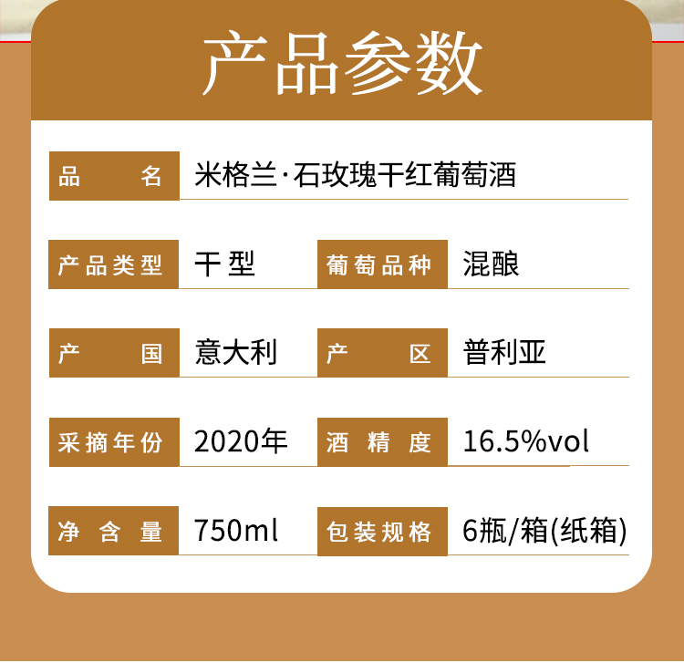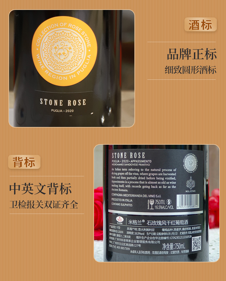 葡萄品种:桑娇维塞、黑曼罗、普里米蒂沃
